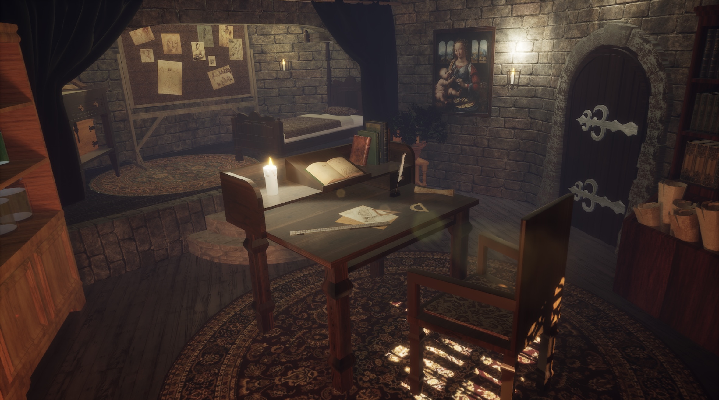 Inspired by Leonardo da Vinci’s home in game Assassin’s Creed 2, this project brief is to create a 3D environment with a medieval setting and in this project I create alternate version of Leonardo’s home which combines a living space with his workshop.